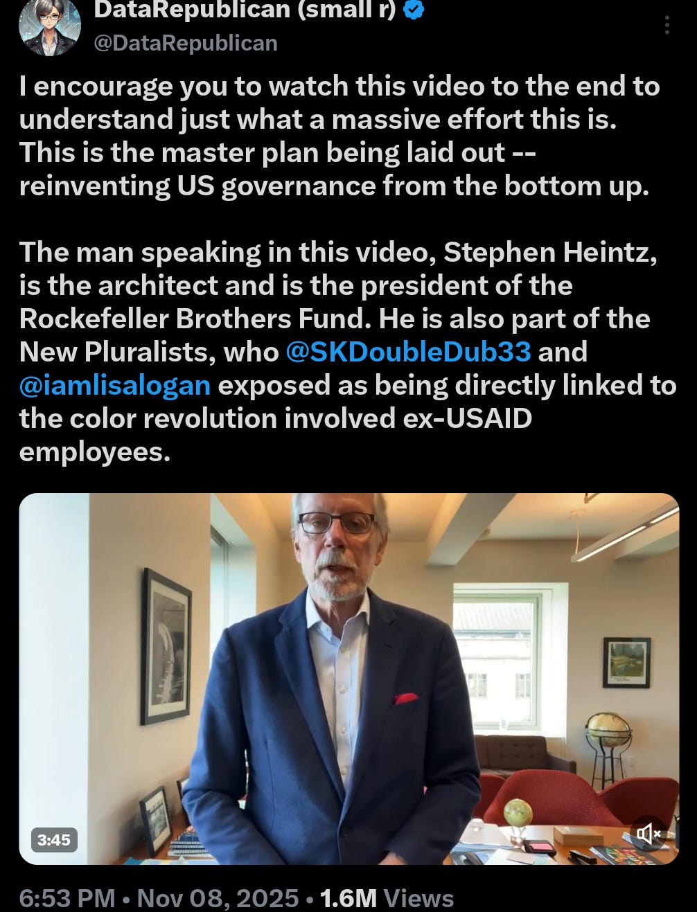 These are not random suggestions. They collectively represent a comprehensive plan developed and supported by Rockefeller Foundation, Ford Foundation, Soros-linked entities, and former USAID operatives. The New Pluralists was created as a result of a meeting held by large foundations in 2017. Funding for NGOs that function much like separate governments is provided by the New Pluralists.
